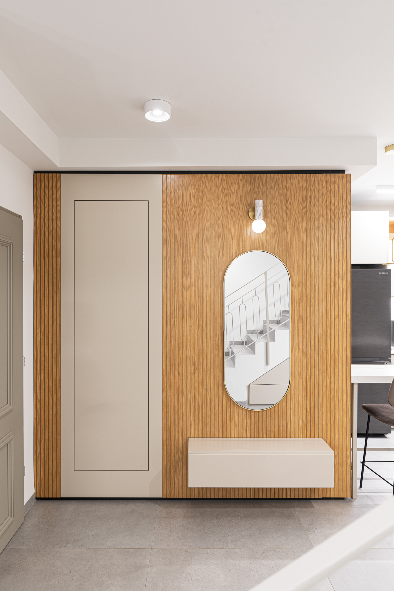 תכנון הנגרות היווה מרכיב עיקרי בעיצוב והעניק את האלגנטיות המודרנית עם חום העץ הטבעי.